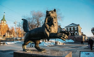 伊尔库茨克(Иркутск)是俄罗斯伊尔库茨克州的首府,是西伯利亚最大的工业城市、交通和商贸枢纽,也是东西伯利亚第二大城市。伊尔库茨克市位于贝加尔湖南端,是离贝加尔湖最近的城市。贝加尔湖是世界上最深的淡水湖,有"西伯利亚明眸"之美誉。湖水清澈见底,湖畔山林幽静,阳光充沛,气候宜人,乘坐火车驰骋于贝加尔湖边,欣赏湖光山色。当每年冬季来临,温度开始下降时,贝加尔湖就会渐渐冻结,而当湖水冻结时,它就会呈现出一种美得让人窒息的全新样貌:蓝冰世界。
