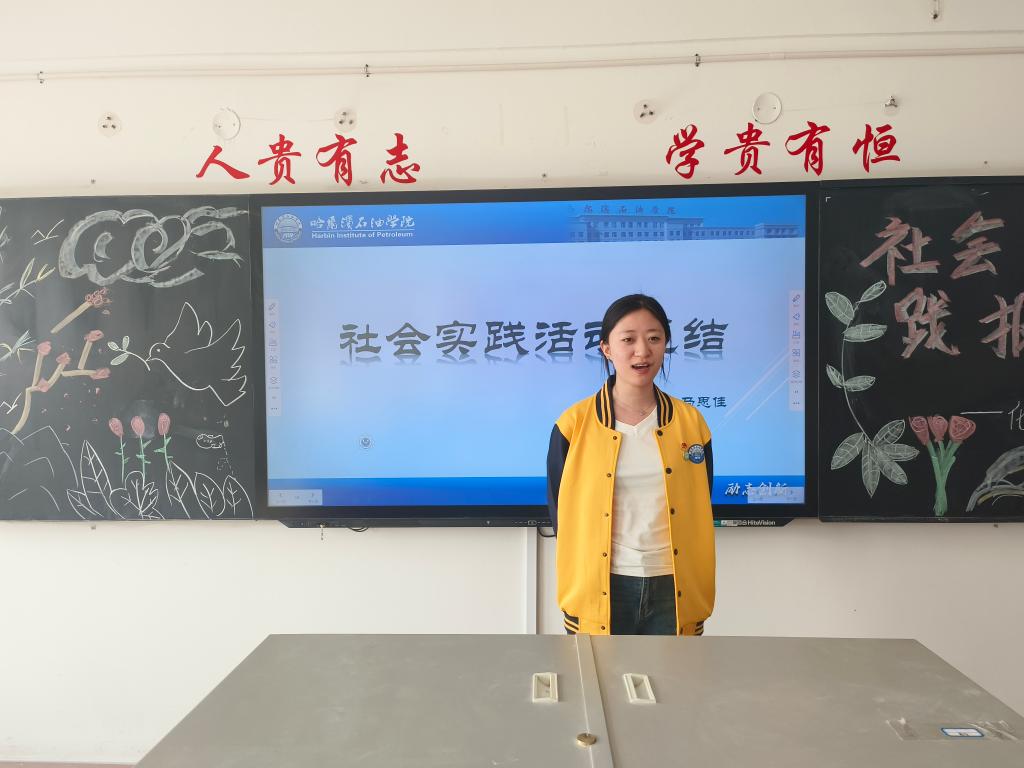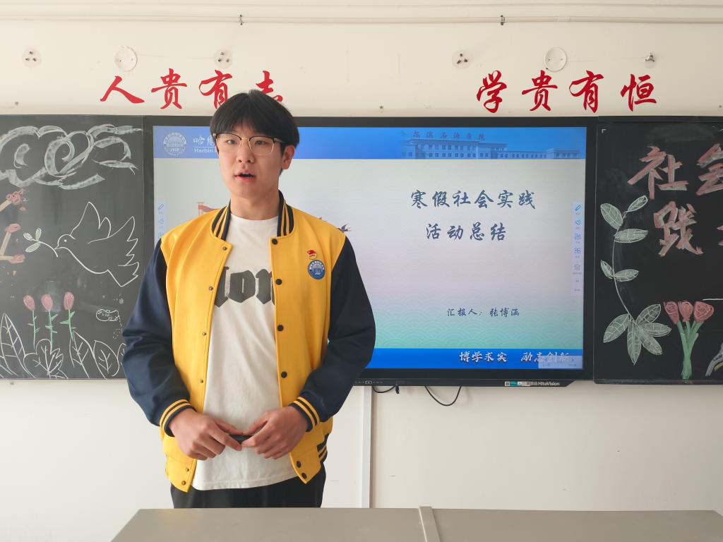 报告会上,优秀社会实践学生代表分别上台分享在社会实践中的所见所闻以及心得体会。他们以精彩纷呈的PPT、深情饱满的演讲等形式,从不同岗位、不同角度、不同经历,结合自身在社会实践过程中遇到的困难、所见及所感进行了汇报,全面展示了社会实践的过程和成果。同学们纷纷表示今后会积极投身于实践当中,不断地学习和实践,努力为社会做出更大的贡献,做有理想、有本领、有担当的新时代青年。党总支副书记赵婧对同学们在寒假社会实践活动中的付出表示肯定,希望大家在未来的学习生活中注重理论和实践的结合,加强实践能力培养,多在实践中找寻真理,真正做到学有所成、学以致用。