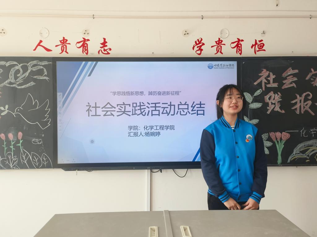 为培养大学生的责任意识和奉献精神,帮助广大青年学生在观察实践中成长,同时深化实践育人成效,鼓励同学们积极投身实践活动,展现大学生的风采。2024年4月11日,化学工程学院于第二教学楼303教室开展了以“学思践悟新思想,踔历奋进新征程”为主题的寒假社会实践报告会。党总支副书记赵婧,学生党支部书记于鑫,2020级辅导员王喃,2023级辅导员王小丽参加本次活动。