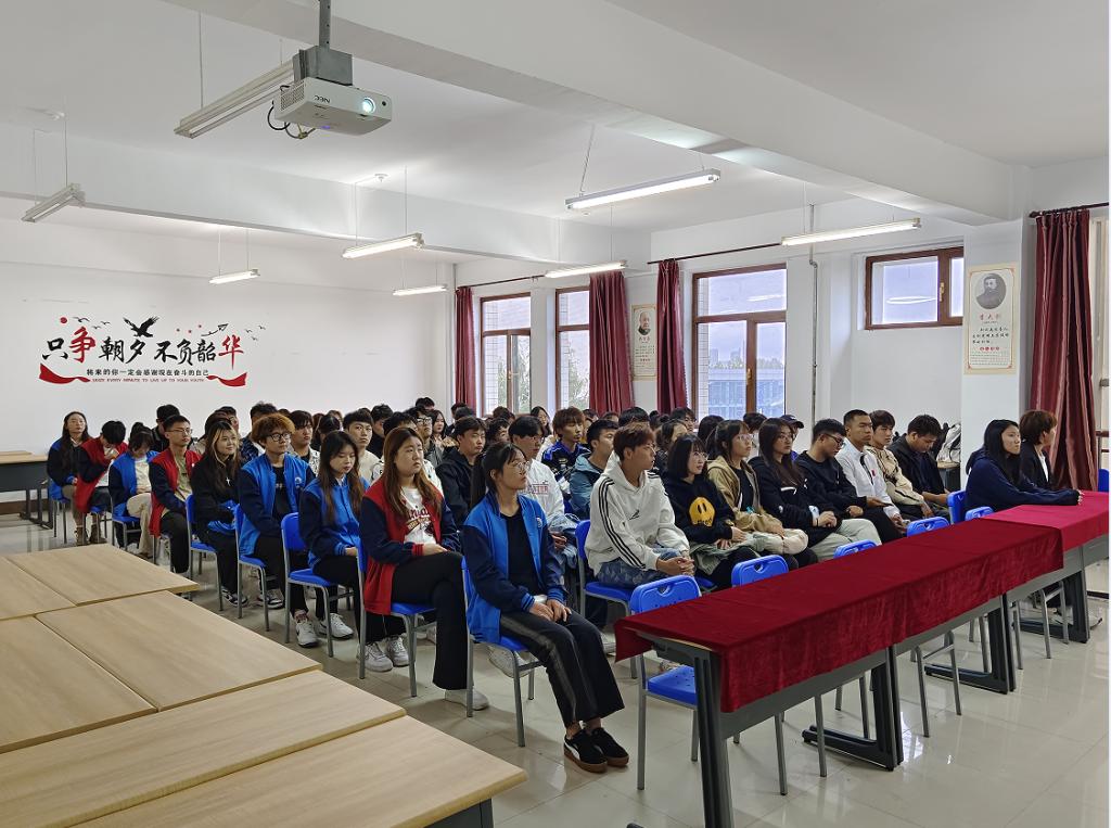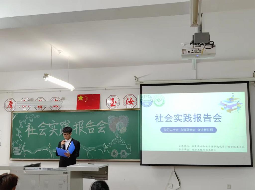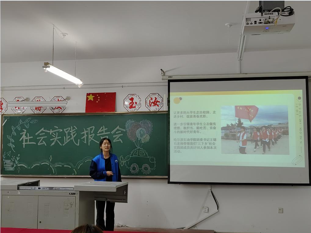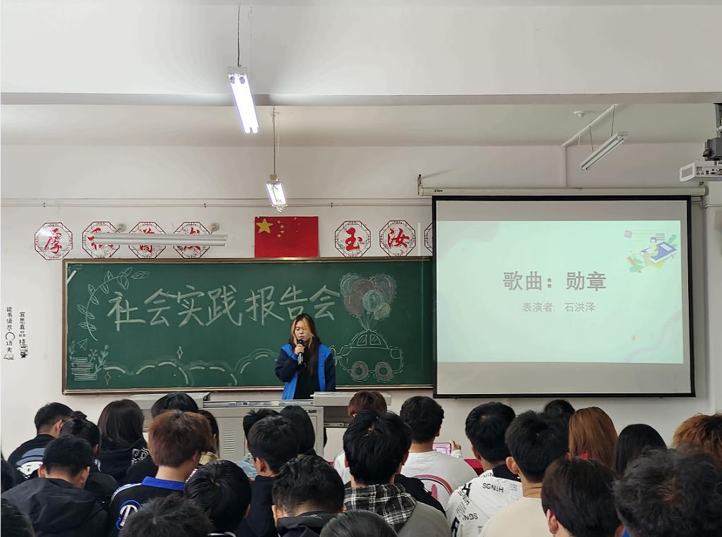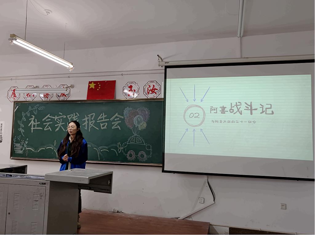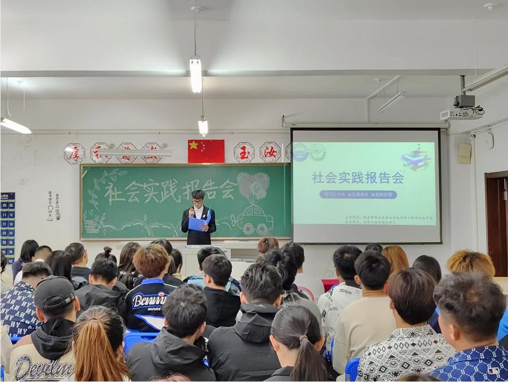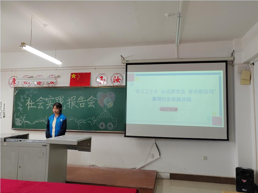 为展示我院同学社会实践优秀成果,鼓励引导青年大学生知行合一、努力进取,2023年9月19日12时,我院于第二教学楼307室开展以“学习二十大,永远跟党走,奋进新征程”为主题的2023年暑假社会实践报告会。党总支副书记赵婧,学生党支部书记于鑫,2020级辅导员王喃,2023级辅导员王小丽出席本次活动,2021级、2022级部分同学参加。