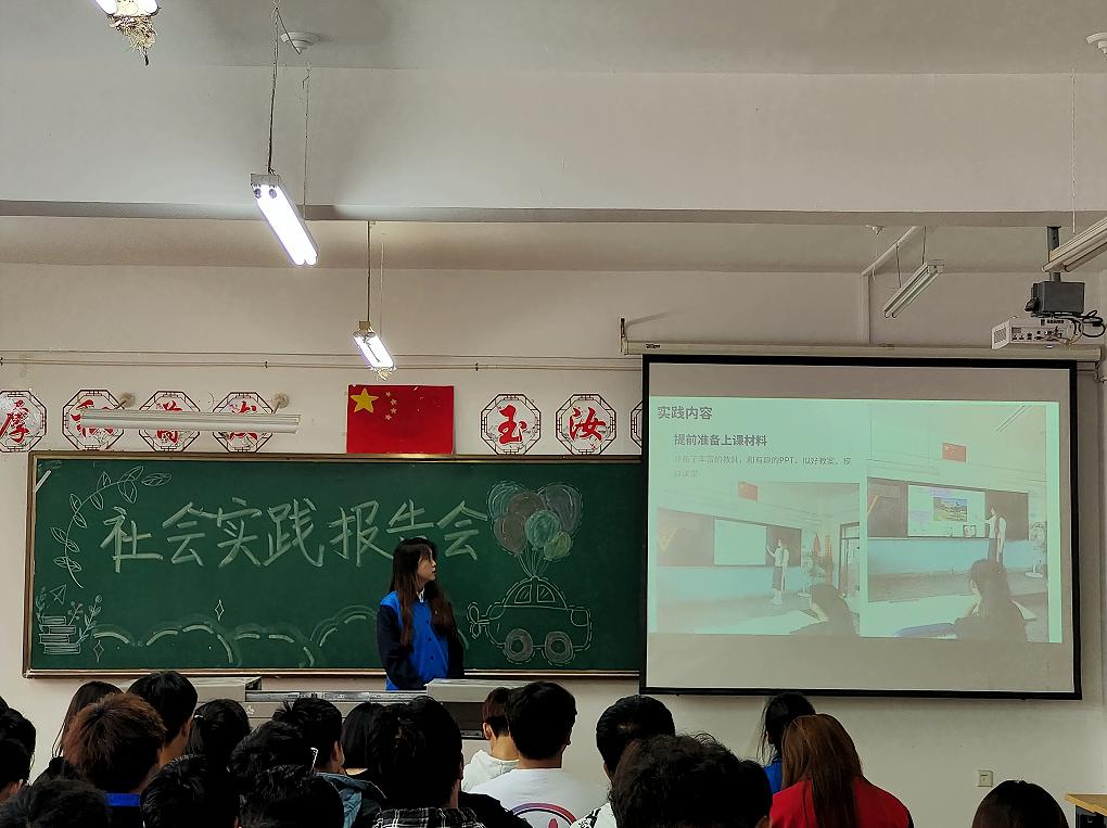 由2021级和2022级优秀社会实践代表共8人通过照片以及PPT形式进行宣讲,分别从实践地点、实践过程、实践成果等方面分享了实践调研过程中的经历见闻和心得感悟。同学们分享参加社会实践的经验,相互学习、借鉴。暑期社会实践活动为同学们提供了一个提升自身综合素质的机会,使同学们拓宽了视野,让同学们在志愿服务中找到自身价值。