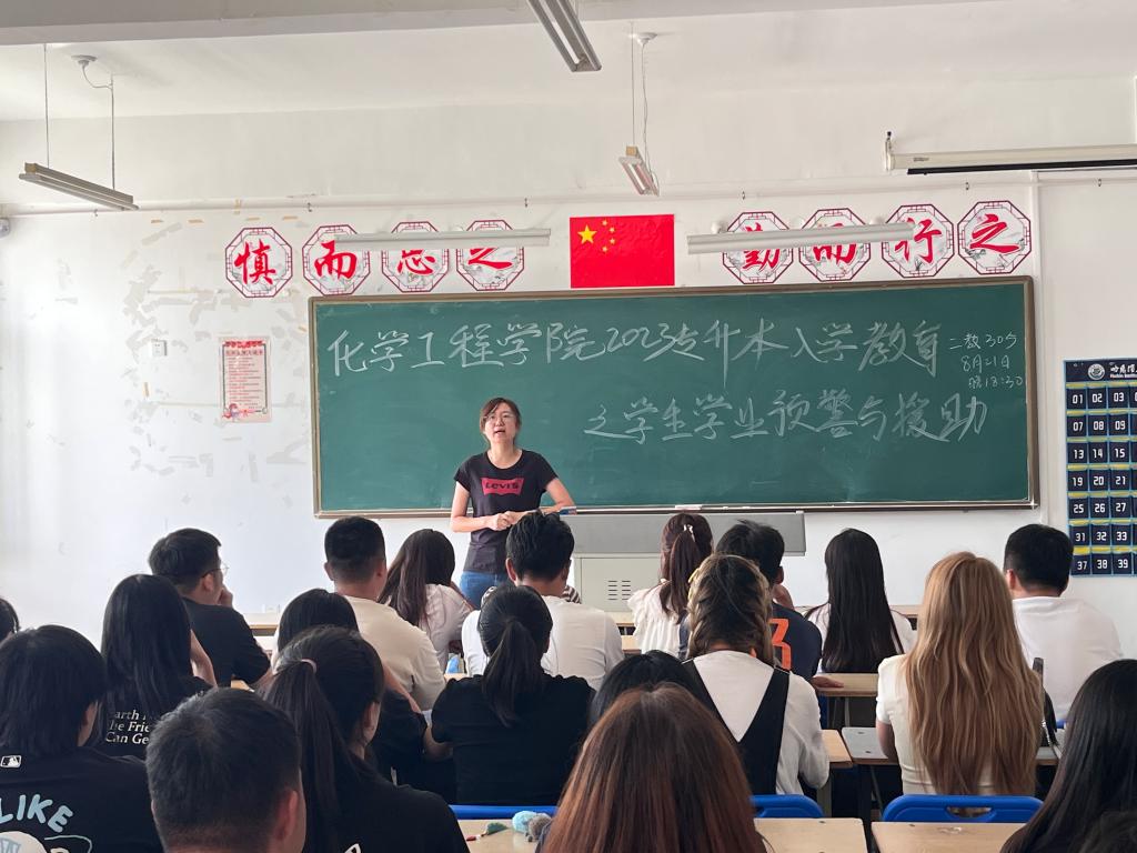 为进一步加强学风建设和学生学业管理,推动学生良好学风的形成,警示学生强化自我管理意识,2023年8月22日13时,化学工程学院于第二教学楼305室召开2023专升本入学教育之学业预警与援助主题班会。会议由辅导员赵婧主持,38名专升本学生共同参加。