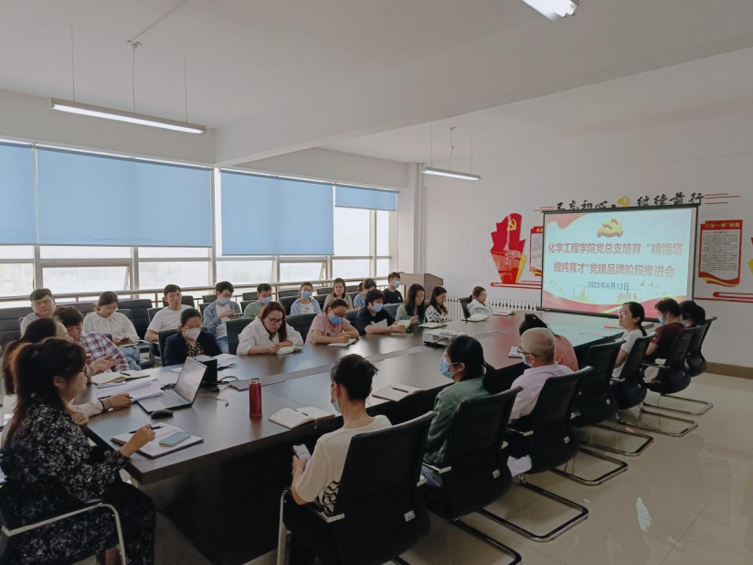 为贯彻落实新时代党的建设总要求,进一步推进党建品牌工作,不断提高基层党组织的凝聚力、战斗力、创造力,夯实学院党建工作,促进党建工作提质增效,2023年6月13日,化学工程学院党总支于第二教学楼党员之家召开培育“精馏塔.提纯育才”党建品牌阶段推进会,会议由学院党总支书记张艳丛主讲,院长杨昕、副院长彭殿宝、及全体教职工参加。