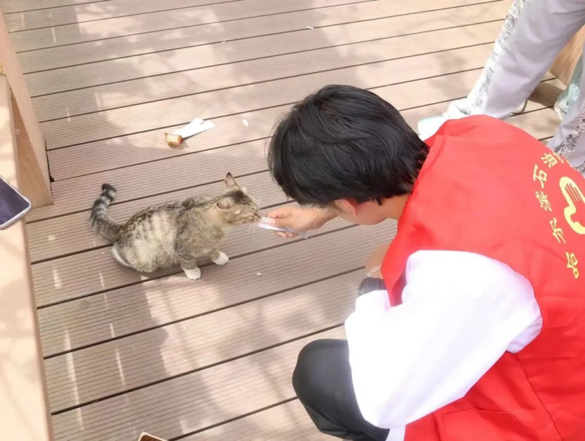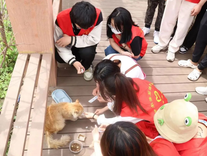 活动中,我院青年志愿者们对学校内的猫窝进行了完善,为小猫提供舒适温暖的环境,随后,志愿者们给小猫准备猫粮、罐头、水等食物,给他们投喂猫条陪它们玩耍,尽自己的力量给小动物送去关怀。