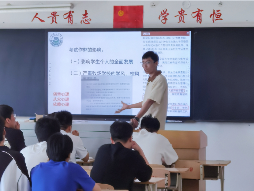 会议伊始,各年级主讲人结合学校考试相关规定和以往典型案例,就考试的性质、作用和考试违纪、作弊所产生的严重后果阐释了诚信考试的重要性,并要求同学们严格遵守考试纪律,如实汇报自己的考试成绩,努力确保本学期不会出现考试作弊现象,最后希望同学们可以诚信应考,严肃校规校纪,用自己的真实水平考出理想成绩,用良好的心态迎接期末考试的到来。