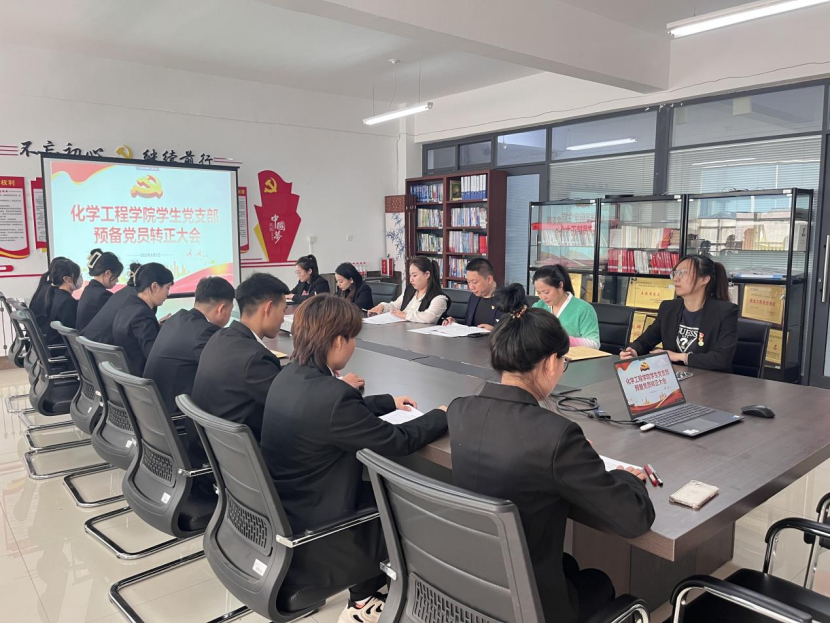为加强党组织建设,壮大党员队伍,2023年6月5日11时50分,化学工程学院学生党支部召开2023上半年预备党员转正大会,会议以线上线下相结合的方式开展,会议由张娇艳同学主持,学院党总支书记张艳丛、党总支副书记赵婧、学生党支部书记于鑫、2019级辅导员马志强、辅导员王小丽、2020级辅导员助理王喃出席会议,全体学生党员参加会议。
