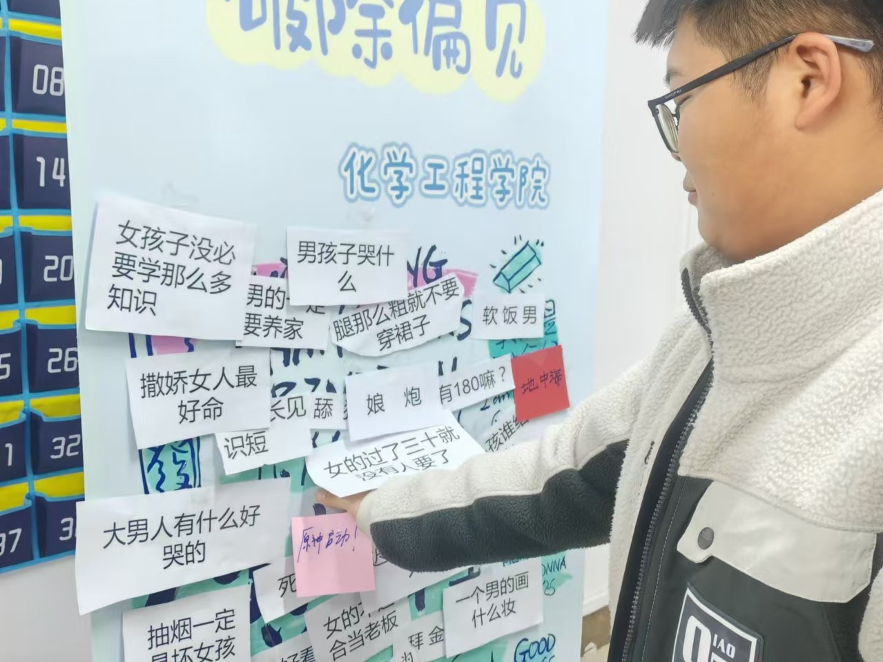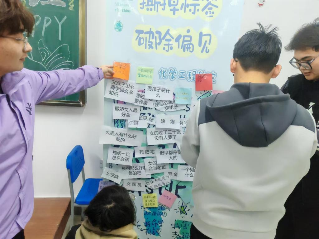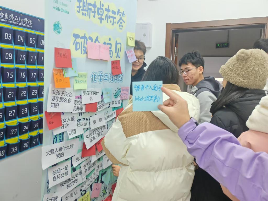 为进一步普及心理健康知识,增强学生自我调节能力,促进学生全面协调发展,2024年11月5日,化学工程学院于2024年世界精神卫生日心理活动月展开以“撕下标签 破除偏见”为主题的展板活动,2022级辅导员于鑫、2023级和2024级部分学生参加本次活动。