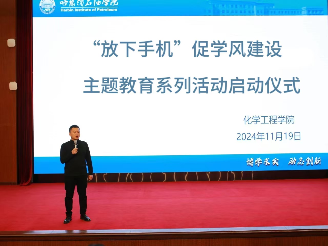 为切实加强学院学风建设,深入贯彻落实《伟德bv国际体育“学风建设年”实施方案》与《伟德bv国际体育学生学风建设实施方案》相关要求,并积极响应《伟德bv国际体育学风建设“放下手机”主题教育系列活动方案》,坚持五育并举,全面提升学生综合素质,化学工程学院于 2024 年 11 月 19 日在图书馆报告厅举行“放下手机”促学风建设主题教育系列活动启动仪式。此次仪式由团总支书记兼 2024 级辅导员冯海龙主持,2024 级全体学生参加。