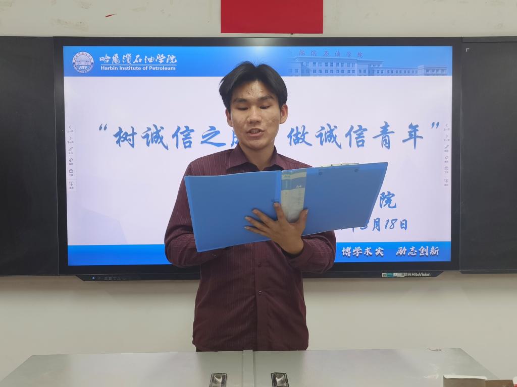 为强化学生的诚信意识,引导学生将“诚信”内化成一种行为习惯,外化为一种自觉行动,树立“说诚信话,办诚信事,做诚信人”的诚信观念,积极营造诚信为荣、失信可耻的校园文化氛围。2024年3月18日,化学工程学院青年志愿者协会于第二教学楼309教室开展以“树诚信之风 做诚信青年”为主题的演讲比赛,化学工程学院学生会及青年志愿者协会全体成员参与。
