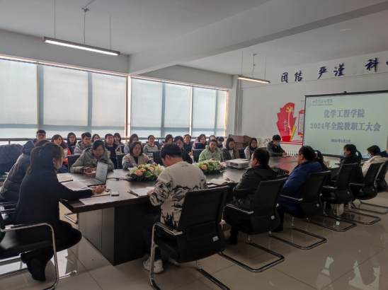 早谋划,抓开局,统一思想,凝心聚力,营造良好的新学期氛围,确保新学期各项工作平稳、有序、高效开展。2024年3月2日上午,化学工程学院在学院会议室组织召开新学期全院教职工大会。会议由院长杨昕主持,党总支书记徐宏莉、副院长彭殿宝、副书记赵婧及全体教职员工参加。