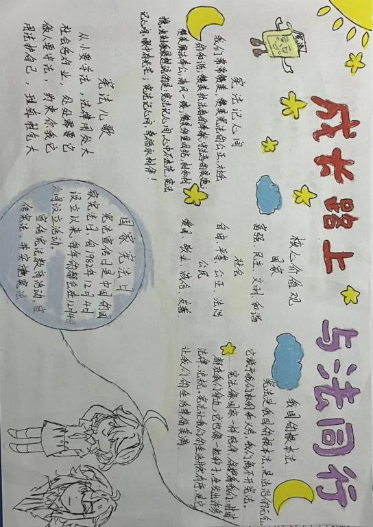 此次活动以了解宪法、尊崇宪法,弘扬宪法精神,增强法治观念为主题,分演讲比赛和手抄报两种形式。在宪法演讲比赛中,同学们在对宪法进行深入学习研究的同时,从社会热点、案例故事、自身体会等方面切入,讲述自己学习宪法知识、树立法治意识、践行法治观念的心得体会,向现场观众普及宪法知识、弘扬宪法精神。在宪法手抄报活动中,同学们充分发挥自己的创意和才华,用手中的笔描绘出他们对宪法的理解和感悟。一幅幅精美的手抄报不仅展示了学生们的艺术才华,更是体现了他们对宪法的尊重和热爱。