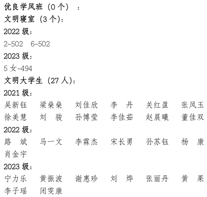 根据《关于评选伟德bv国际体育2023-2024学年度优良学风班、文明寝室、文明大学生工作的通知》,经学生本人申请、学院初审材料通过、学院党政联席会议讨论,现将评选情况公示如下: