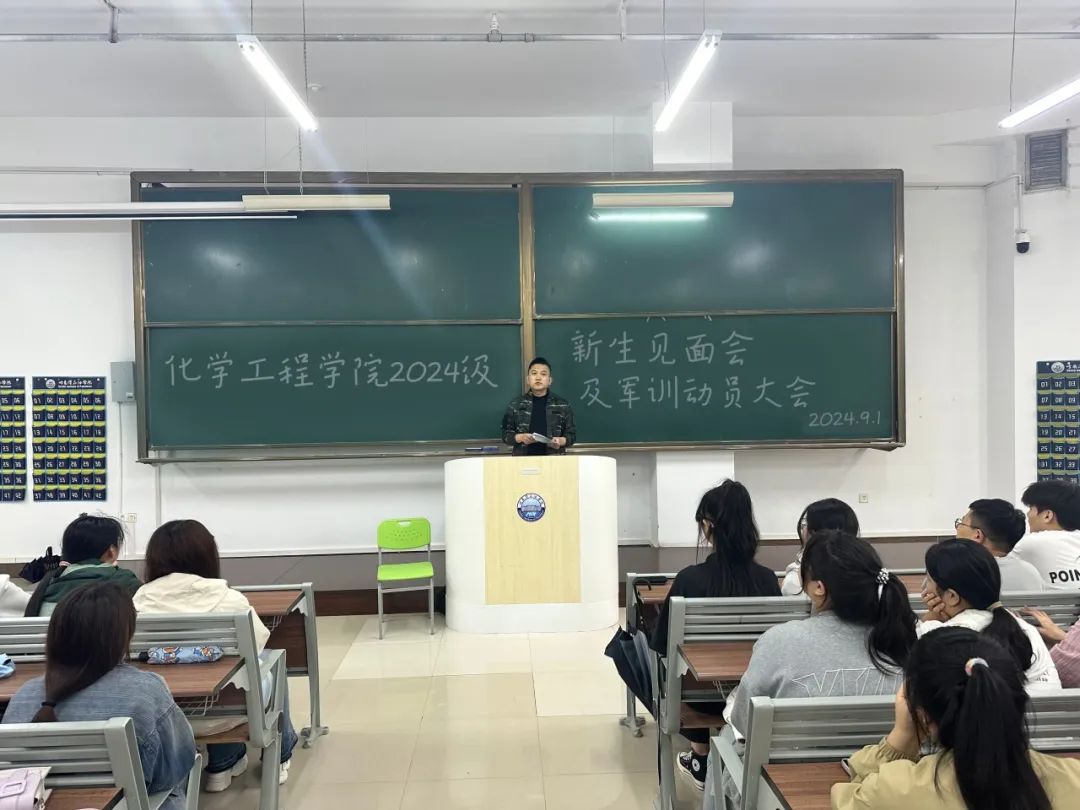 为顺利迎接军训,鼓舞学生士气,强调军训期间注意事项,更好地维护军训期间的纪律。2024年9月1日,化学工程学院于第一教学楼107教室召开2024级新生见面会及军训动员大会。团总支书记兼2024级辅导员冯海龙主持,2024级新生共180余人参加此次会议。