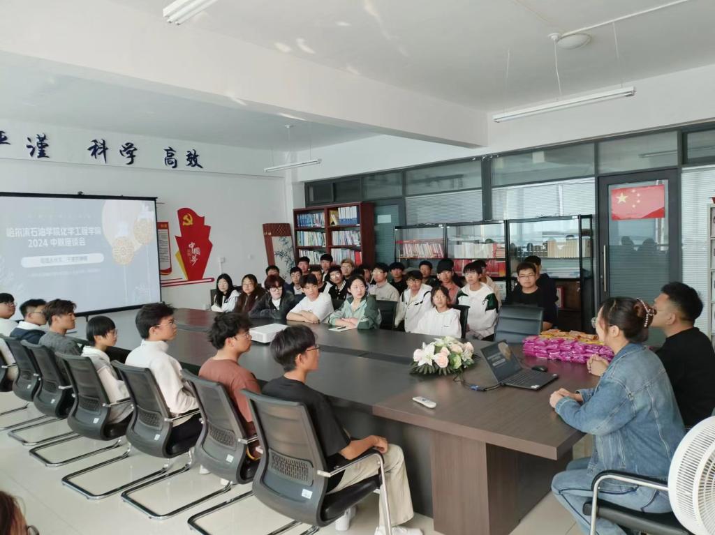 为让新生们在中秋来临之际感受到学院的关怀与温暖,2024年9月15日,化学工程学院党总支书记赵婧、团总支书记兼2024级辅导员冯海龙于第二教学楼三楼综合办公室开展中秋座谈会,随后前往新生寝室向他们致以节日的问候与祝福。