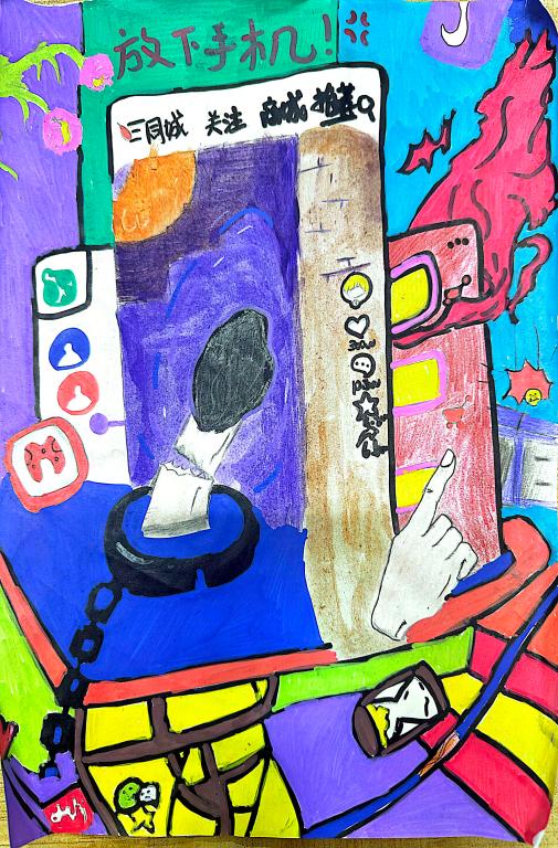 参加此次活动的各专业学生从“放下手机,拥抱健康生活”的主题出发,利用色彩鲜明、形象生动的手绘插图对手机使用的利与弊、使用方式、使用时间以及如何防止沉迷等问题进行了分析和阐述,将健康、文明的生活方式传递给更多的师生,引导同学们在享受美好生活的同时,培养积极向上、健康文明的生活方式,共同营造积极向上的校园氛围。