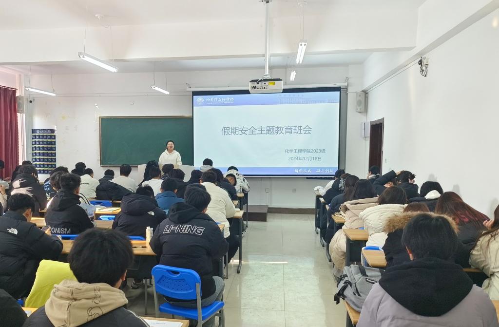 寒假将至,为做好放假期间学生安全工作,保障学生生命安全,确保校园安全稳定,化学工程学院于2024年12月16日—12月18日召开假期安全教育主题班会,会议由各年级辅导员主持,全体同学参加。