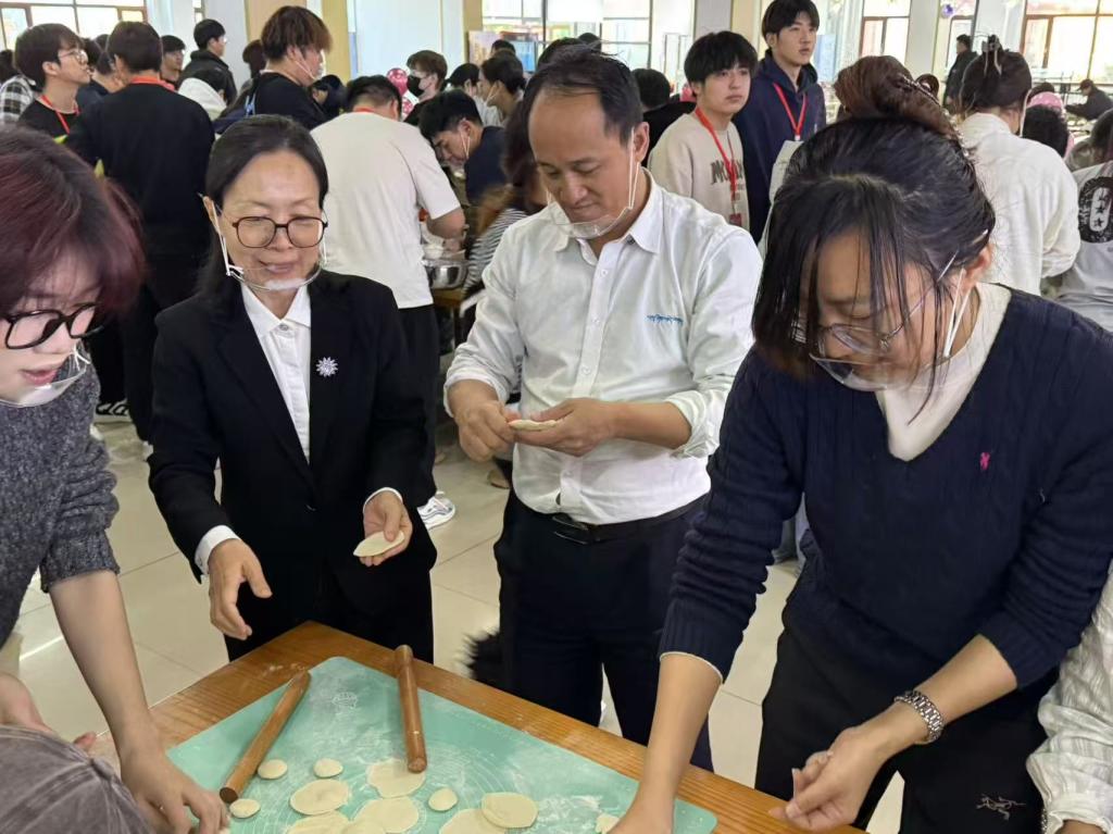 活动现场热闹非凡,大家围站在桌旁,纷纷拿出自己的看家本领。老师们手法娴熟,一捏一按,一个个饱满的饺子便成型了;学生们也不甘示弱,认真学习,逐渐从生疏变得熟练。在大家齐心协力之下,形态各异的饺子摆满了餐盘,有传统的月牙饺,也有创意的元宝饺,每一个饺子都蕴含着师生们的创意与热情。王义宁校长与林立民书记也亲临现场,与广大师生一同感受传统美食文化的魅力,共度欢乐温馨的时光。