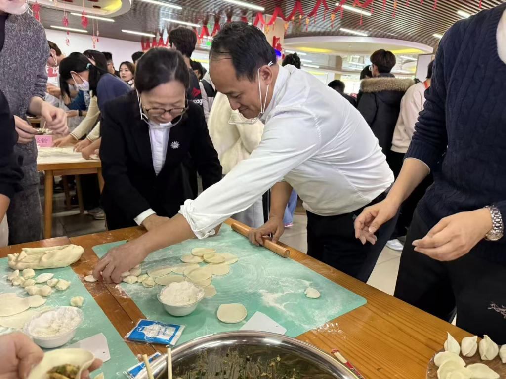 在传统节气冬至即将到来之际,为进一步弘扬中华优秀传统文化,丰富校园文化生活,2024年12月20日,化学工程学院教职工及学生代表齐聚一堂,参加“情满校园,饺香四溢”——冬至师生包饺子大赛。学院院长杨昕、党总支书记赵婧、团总支书记兼2024级辅导员冯海龙来到现场,共同体验传统节日的魅力,感受冬日温情。