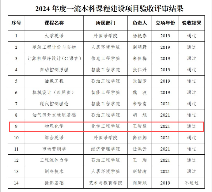 近日,伟德官网正式启动2024年度一流本科课程建设项目验收评审工作,由王智慧老师带领的教学团队申报的《物理化学》课程,经过三年的建设,成功通过验收,正式获批为伟德bv国际体育一流本科课程。