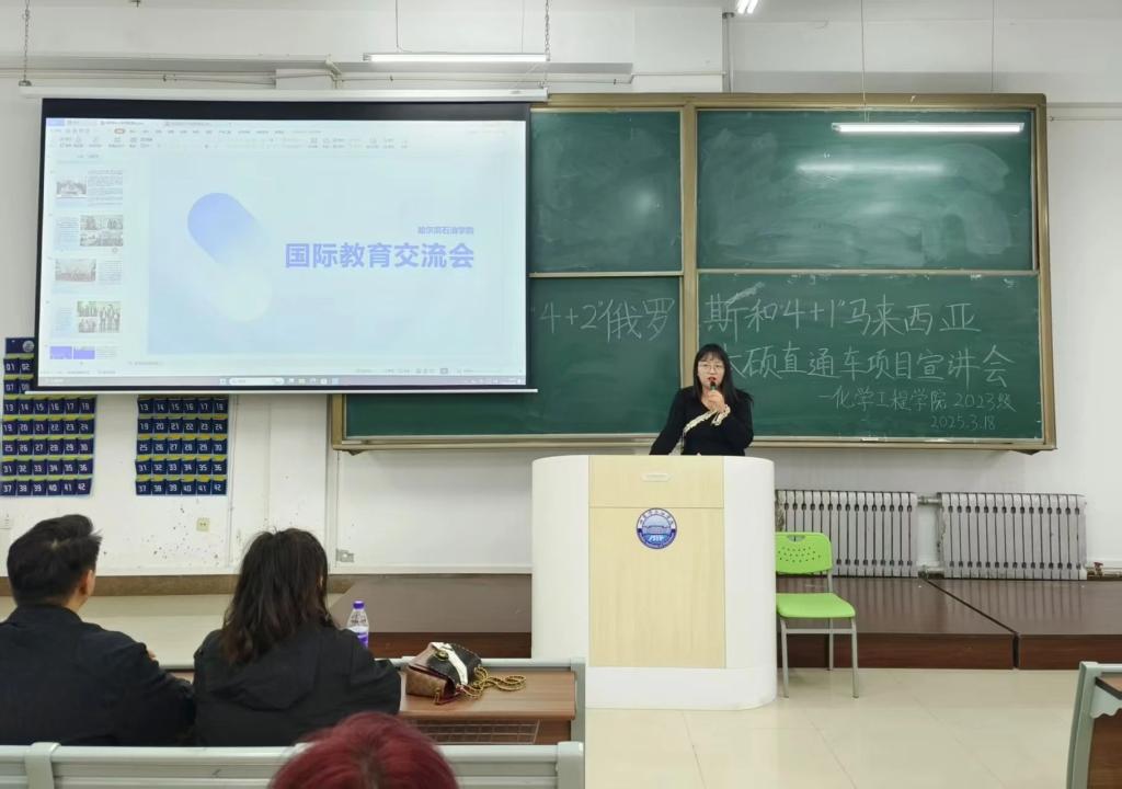 为拓宽学生国际视野,助力高层次人才培养,2025年3月18日,国际教育学院院长周瑞在主教104教室为化学工程学院2023级学生开展“4+2”俄罗斯与“4+1”马来西亚本硕直通车项目宣讲会,此次宣讲会旨在为有意向赴俄罗斯和马来西亚深造的学生提供详细的留学信息,帮助学生了解项目的具体内容、申请流程及未来发展前景。