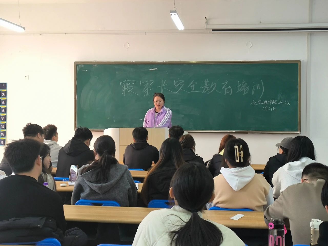 为进一步提升寝室长的安全责任意识和应急处理能力,加强宿舍安全和管理效能,营造和谐稳定的校园生活环境,2025年3月20-21日,化学工程学院在第二教学楼开展寝室长安全教育讲座。会议由各年级辅导员主持,全体寝室长积极参与。