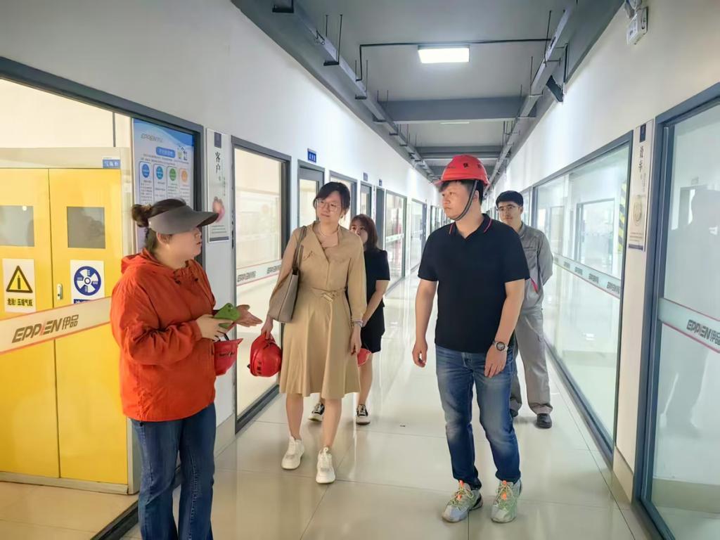 在企业人事主管侯主管陪同下,学院一行实地参观了行政办公区域、生产办公区域及员工宿舍、食堂等生活区域。
