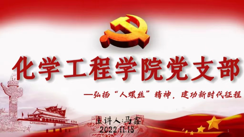 为深入学习贯彻党的二十大精神,提高学生党员在新征程上的党性修养,增强党组织的凝聚力、创造力,引导学生党员发挥先锋模范作用,进一步坚定理想信念,2022年11月14日—11月19日,化学工程学院学生党支部组织学生党员开展“忆历史征程,立脚下之路”学生党员讲党课系列学习教育活动。