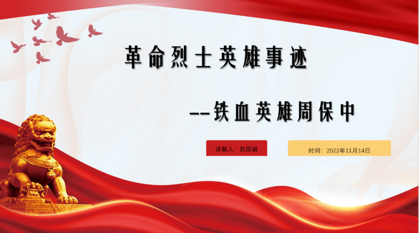 赵国巍讲解了铁血英雄周保中的故事,年仅15岁的周保中毅然参军,他一生忠于祖国、忠于人民,将自己的一生贡献给了祖国,是我们每个人都值得学习的榜样。