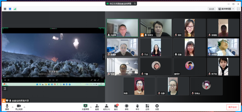 听了各位党员同志的观影感受后,党总支书记张艳丛强调,我们今天的和平安宁、幸福生活是千千万万革命先烈的鲜血和生命换来的,我们要铭记历史,不忘初心,学习发扬中国人民志愿军攻坚克难、不怕牺牲、甘于奉献的精神。在下一步工作中,学院教工党支部将持续通过丰富党史学习教育形式和载体来进一步引导全体党员学习党的二十大精神,重温光辉历史,坚定理想信念,不忘初心和使命,以更加饱满的热情投入工作,为学院的发展作出积极贡献。