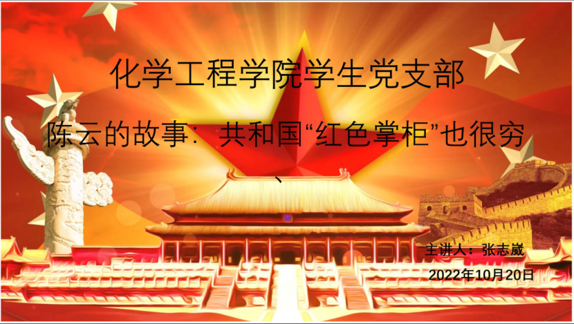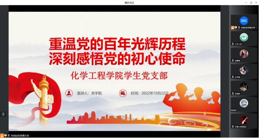 为全面学习贯彻习近平新时代中国特色社会主义思想,深入推进党史学习教育常态化长效化,加强学习党史热情,提高党性修养。2022年10月19日—10月22日,化学工程学院学生党支部组织学生党员开展“忆历史征程,立脚下之路”学生党员讲党课系列学习教育活动,学生党员们围绕初心使命、习近平谈治国理政、党史学习等主题向同学们分享自己的心得体会,用自己的语言把党史学习讲出来、把工作经验传出来,让党课“活”了起来,在支部形成积极向上的学习风气。