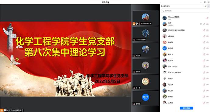 为纪念五四运动103周年,弘扬“爱国、进步、民主、科学”的五四精神。进一步开展党史学习教育,引导学生党员坚定理想信念、传承优良精神,庆祝中国共青团成立100周年。2022年5月5日,化学工程学院学生党支部开展2022年第八次集中理论学习,52名学生党员参加学习。本次党课主题为:“不负前辈星火,传承五四荣光”。通过杨浚枢老师生动的讲述一代代中国青年从山河破碎时到新中国成立至今的奋斗故事,描绘出不同时代背景下伟大五四精神贯穿始终的磅礴伟力,指引和号召广大青年在新时代不忘革命先烈用热血凝炼的伟大五四精神,以爱国主义为最崇高信仰,在祖国需要的事业中贡献青春力量,在奋进路上握稳时代接力棒,在为党和人民利益的不懈拼搏中书写亮丽青春最美好的篇章。
