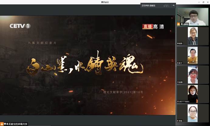 按照黑龙江省教育工委和学院党委的统一要求,2021年9月25日19时,化学工程学院教工党支部组织全体教师通过线上的方式集体观看党史纪录片《白山黑水铸英魂》,杨昕院长、张艳丛书记及全体教师共同参加观看。
