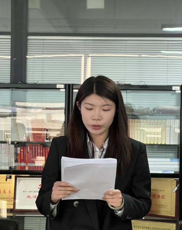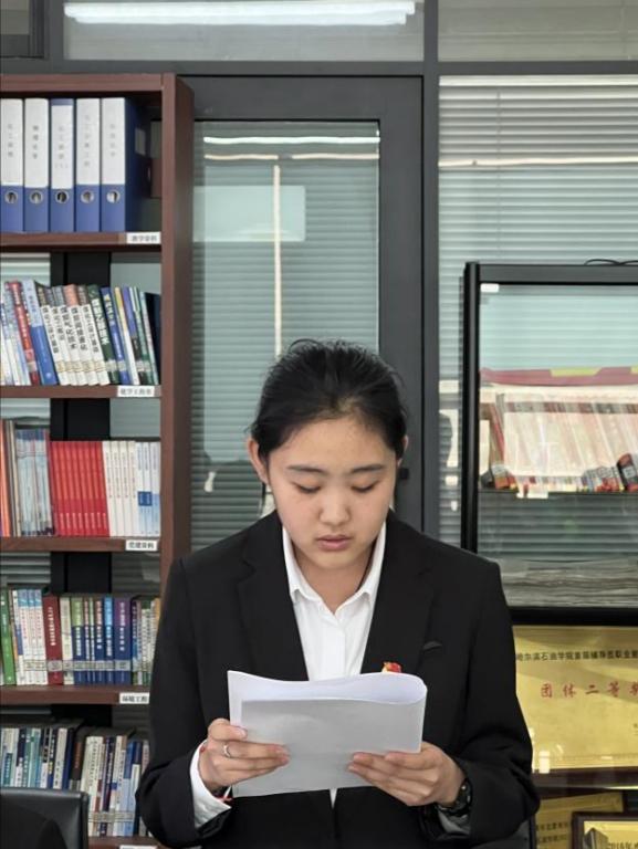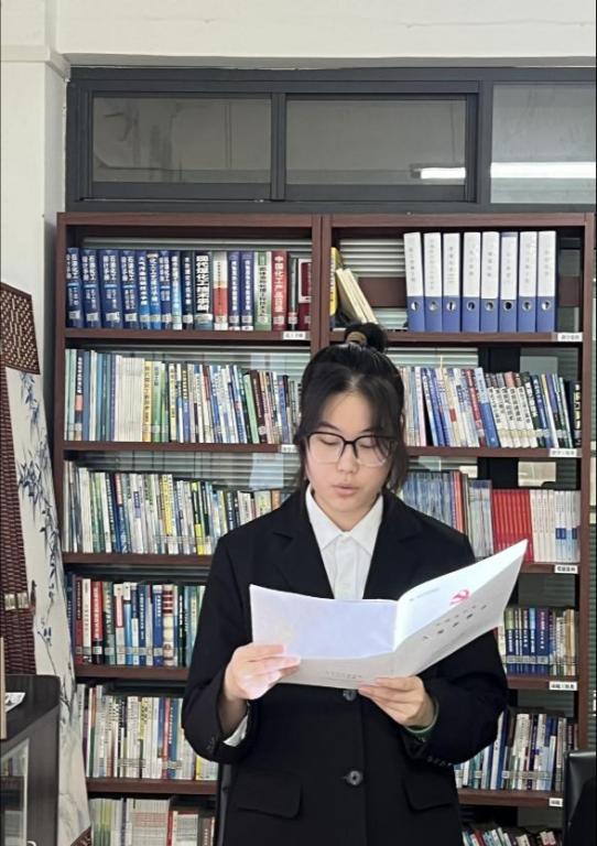 学生党支部书记于鑫做总结讲话,她希望各位同志以此为起点,更加严格地要求自己,不断提高自身的政治素质和专业能力,在今后的学习和工作中,充分发挥党员的先锋模范作用,为党和人民的事业做出更大的贡献。