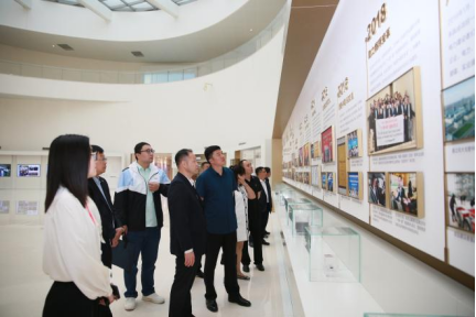 协鑫(集团)控股有限公司副总裁兼西北地区副总经理朱坤、助理副总裁兼人力资本中心总经理李克存、内蒙古鑫元硅材料科技有限公司总经理助理薛智栋、人力资本中心招聘高级经理张晖、人力资本中心招聘经理金晶等于协鑫科技控股有限公司(苏州总部)接待伟德官网领导一行参观协鑫历史文化馆,协鑫(集团)控股有限公司副总裁兼西北地区副总经理朱坤对企业的历史由来和辉煌成就做了详细的介绍。