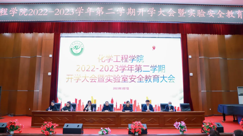 为确保新学期各项工作的有序、平稳、高效开展,进一步加强学院师生的实验室安全意识,消除实验室安全和危化品管理隐患,推动学院各项工作再上新台阶,引领师生以崭新的面貌、饱满的精神投入到新学期的学习工作中,2023年3月7日16时30分,化学工程学院于图书馆报告厅召开2022-2023学年第二学期开学大会暨实验室安全教育大会,会议由学院党总支副书记赵婧主持,院长杨昕、党总支书记张艳丛、副院长彭殿宝、学生党支部书记于鑫、实验室主任许伟锋、2020级辅导员助理王喃出席,2020级、2021级、2022级共700余人参加。