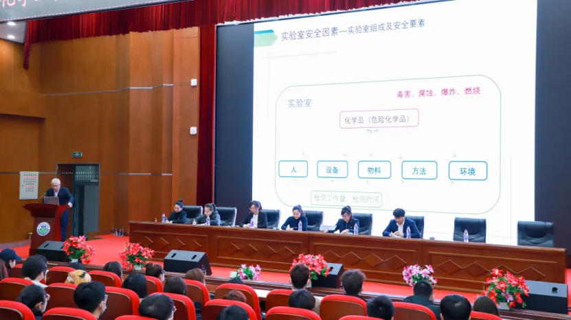 会议伊始,许主任从实验仪器规范使用、实验安全事故展示、常见化学药品的危险特性、药品储存要求、实验室常见危险操作案例、如何做好实验室安全管理工作等七个方面向我们讲解了实验室的安全要求和注意事项。接着,嘱咐同学们一定要充分认识实验室危险化学品和实验室安全管理工作的重要性,加强规章制度学习,规范化进行科学实验,按照要求使用各类设备,避免实验室危险化学品安全事故的发生。