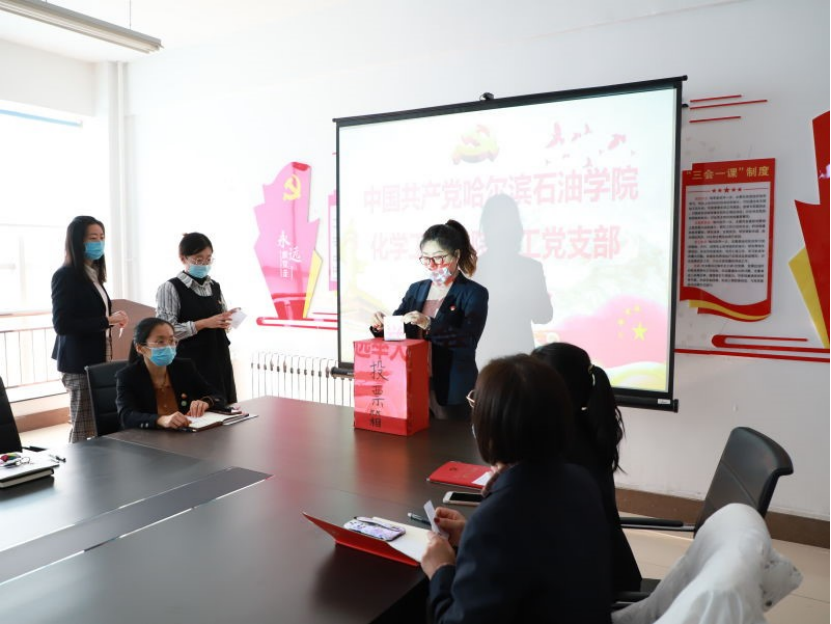 会上,彭殿宝同志代表上届党支部委员会作工作报告,报告经大会认真审议讨论内容并全票一致通过。随后,彭殿宝同志宣读《中共伟德bv国际体育化学工程学院教工支部委员会换届选举办法》,依据选举流程,大会公布候选人名单、介绍候选人情况。本次会议选用差额选举法,由监票人和计票人分发选票,并由全体与会教工党员填写选票,投票结束后清点选票并当场公布候选人得票情况。最终票选出彭殿宝、罗海斌、李莹娟、张静和陈朔同志为新一届党支部委员。最后新当选的教工党支部委员会委员举行教工党支部委员会第一次全体会议,选出彭殿宝同志任教工党支部书记,罗海斌同志任教工党支部副书记。