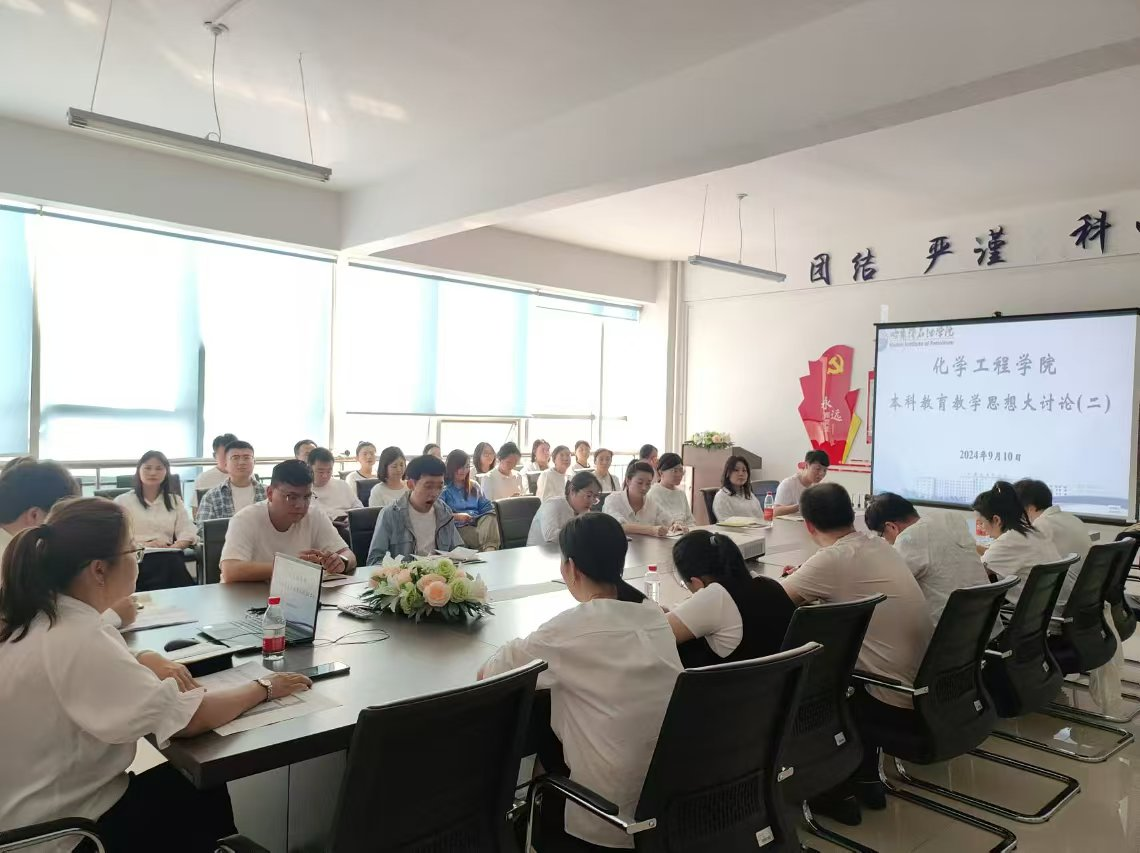 根据《化学工程学院开展本科教育教学思想大讨论实施方案》要求,9月10日下午,学院组织开展本科教育教学思想大讨论第二次集中学习讨论活动,院长杨昕、副院长彭殿宝及学院全体教师参加。