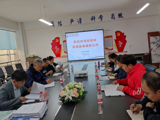 听取汇报后,胡校长对学院在毕业论文(设计)、青年教师培养、开放实验室、课程教学改革等方面所取得的成绩给予充分肯定。同时也对专业设置调整优化、线上线下混合式教学等工作给出了指导性意见。同时也承诺会与学校有关部门协调,尽快解决实验仪器设备不足、教学多媒体老化、危废存储库等问题。教学质量监控与评估中心主任张耘、教务处纪大伟、鞠然也从自身分管的工作给出了建设性意见。