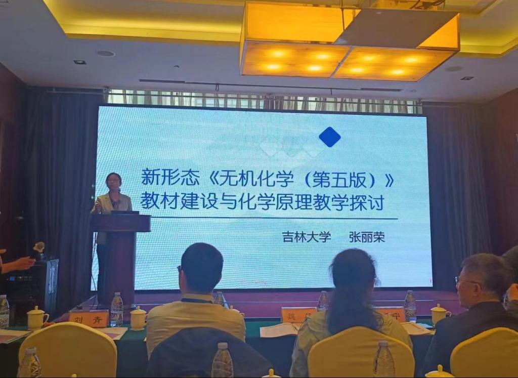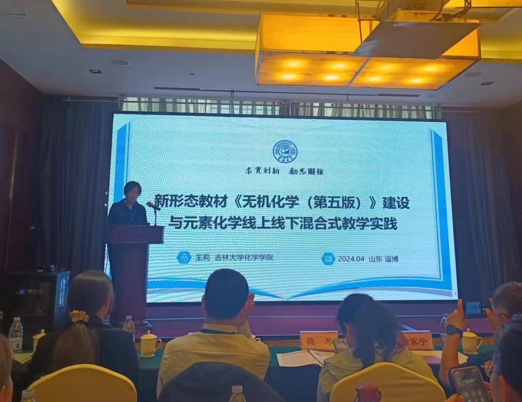 化学化工分会场吉林大学张丽荣教授和王莉教授分别对新形态《无机化学》(第五版) 教材建设与化学原理教学及新形态《无机化学》(第五版) 教材建设与元素化学线上线下混合式教学实践进行了探讨;山东大学苑世领教授分享了物理化学教学心得;山东理工大学刘青副教授以分析化学课程群“5E”混合式教学模式探索与实践为题做了报告,分享了课程群团队建设及教学模式探索的心得体会。