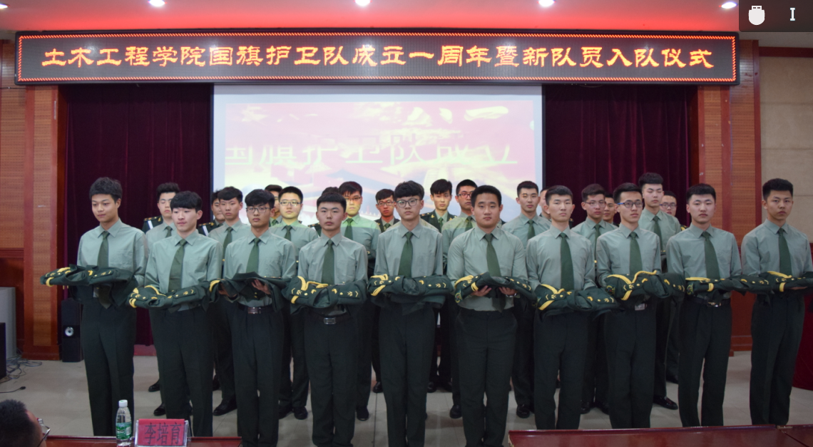 一周年庆祝活动虽然结束了,但国旗护卫队这面精神旗帜将高高的飘扬在土木工程学院的上空。相信在院领导的正确领导下,国旗护卫队将用铁一般的信念、铁一般的信仰、铁一般的纪律、铁一般的担当完成学院交给的各项任务!真正的成为一支“听党指挥、能打胜仗、作风优良”的优秀学生团体。