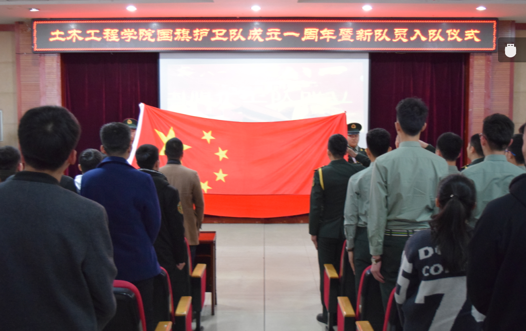 2017年3月15日中午,518教室,土木工程学院开展国旗护卫队新队员入队仪式。土木工程学院院长盖晓连、党总支书记孙金莹、团总支书记李培育、国旗护卫队全体队员、全体学生会成员及2016级全体学生参加。