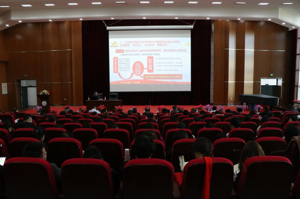 冯晓校长从深刻理解党中央在党内开展集中教育特别是开展“不忘初心、牢记使命”主题教育的重大意义,学习领会习近平新时代中国特色社会主义思想、深刻理解“不忘初心、牢记使命”重要论述,对推动党中央和省委各项决策部署落实落地的工作举措的思考,对推动学校高质量发展的办法和路径的思考等四个方面为全体师生党员上了一堂深刻而生动的党课。
