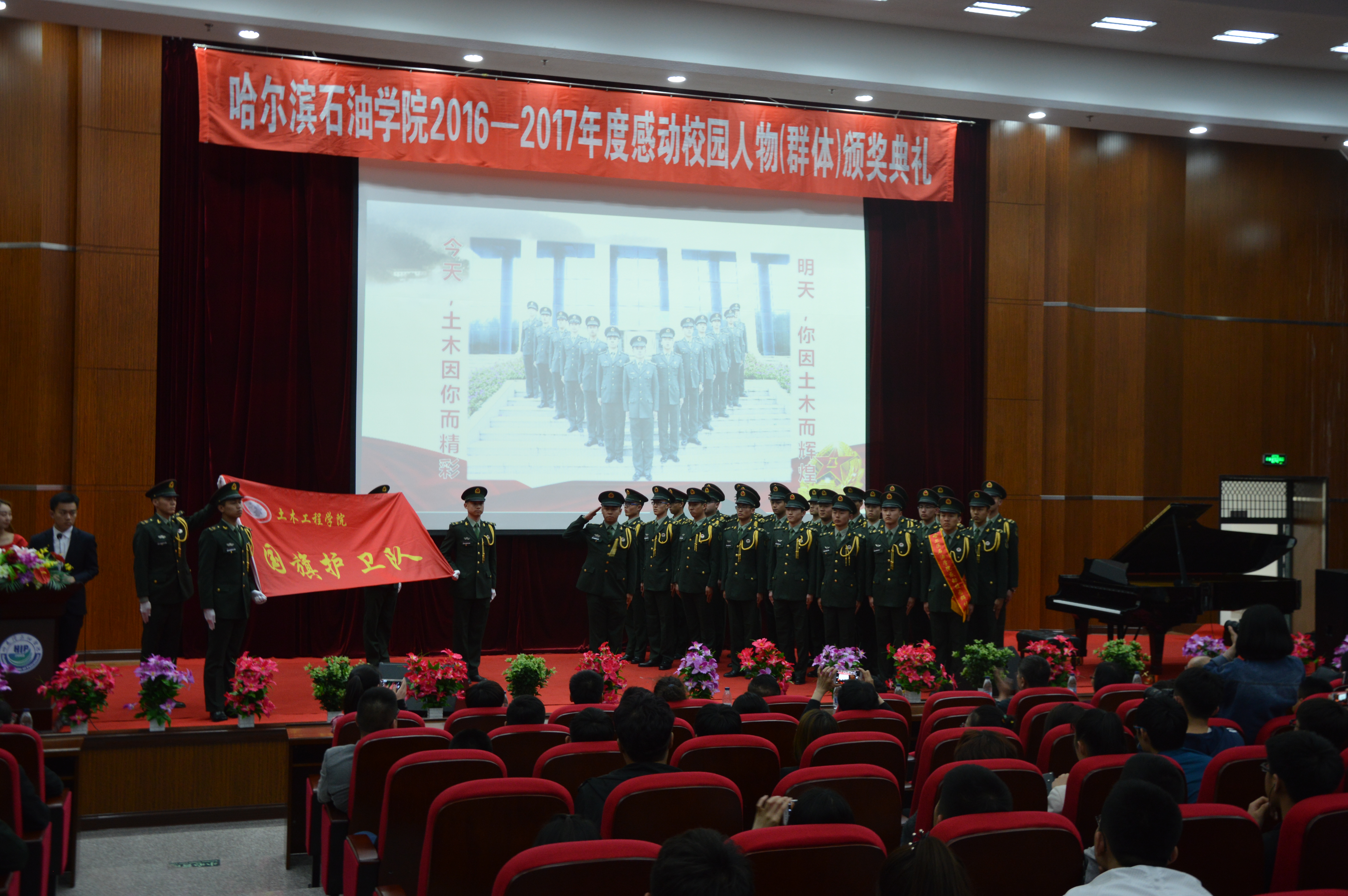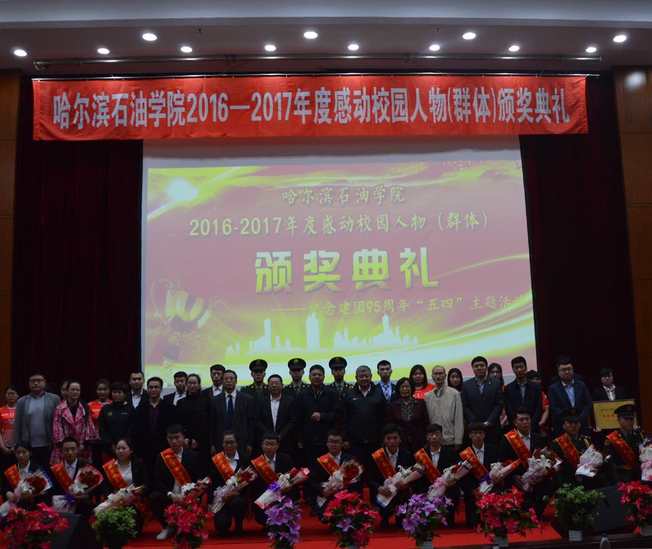颁奖典礼现场,获奖者与同学们分享了自己的感动故事。他们当中,有热心服务、无私奉献的学生社团;有身残志坚、志存高远的自强学子;有热心公益、团结友爱的爱心人物;有兴趣广泛、全面发展的体育之星……他们事迹平凡,却带来感人至深的心灵冲击,播撒着乐观进取的正能量,用行动诠释了哈石油人向上向善的高贵品质。