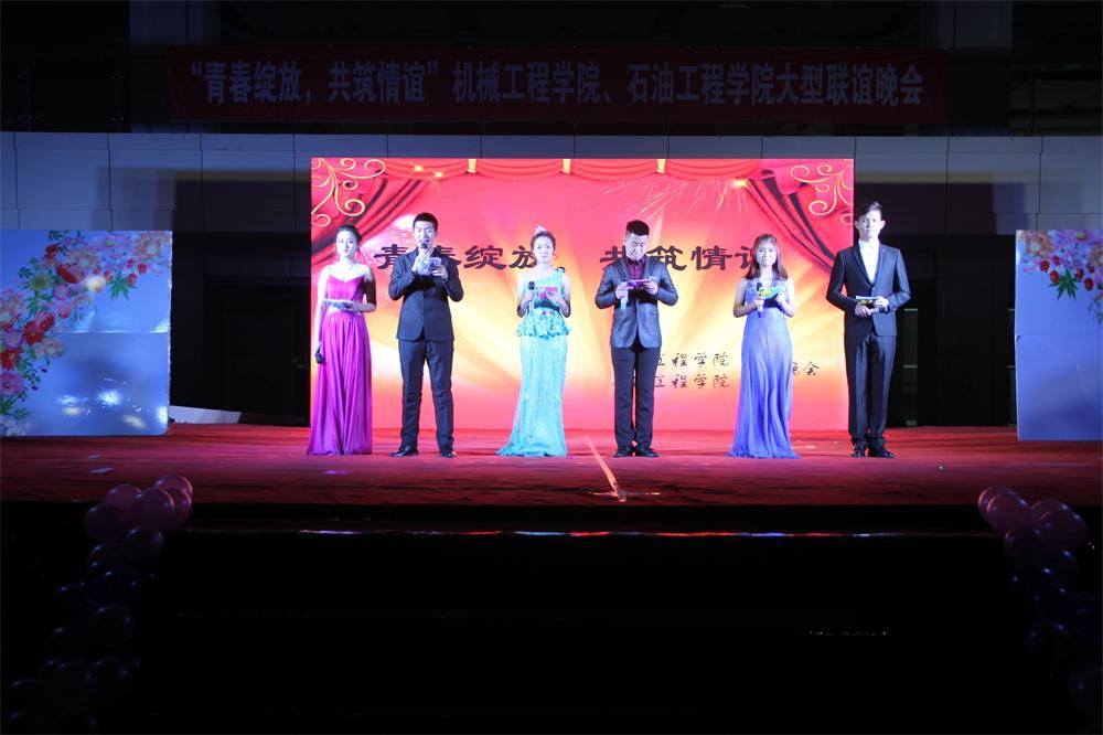 2016年11月25日晚,石油工程学院与机械工程学院在主教阳光大厅隆重举办“青春绽放,共筑情谊”大型联谊晚会。校团委书记王锦石、机械工程学院院长王妍玮、党总支书记毛雷、石油工程学院党总支副书记康平军以及两个学院的部分教师、辅导员出席本次晚会,与现场的同学们欢聚一堂,共同观看了这场精美绝伦的视听盛宴。