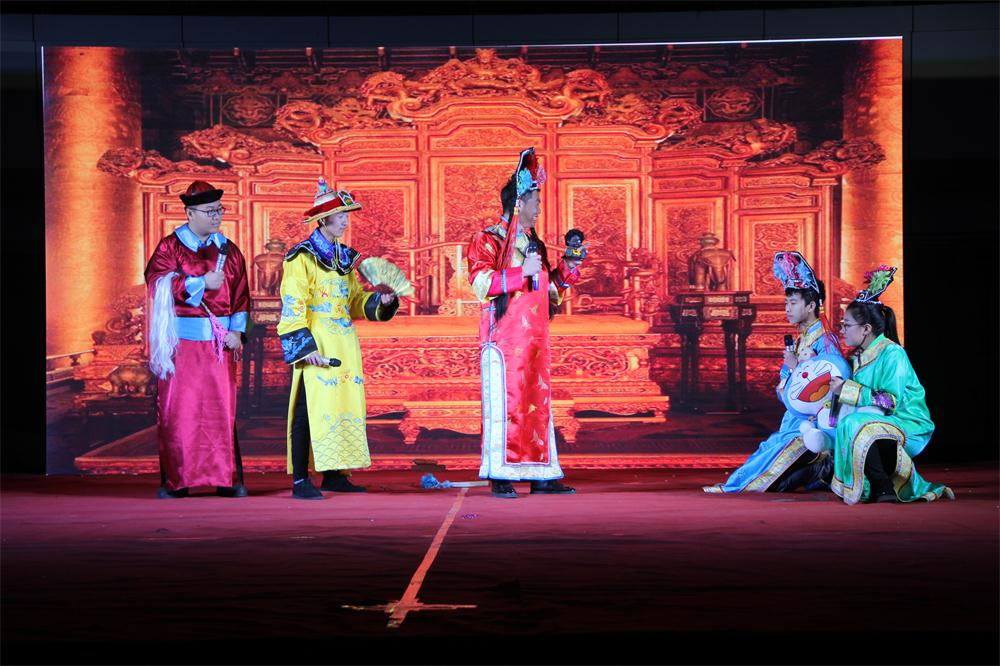 25日当晚的阳光大厅,灯光璀璨、流光溢彩,处处洋溢着喜庆祥和的欢快气氛。晚会在全场飘洒的礼花和两院领导、老师的祝福视频中拉开了序幕。