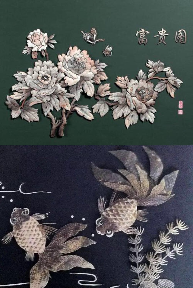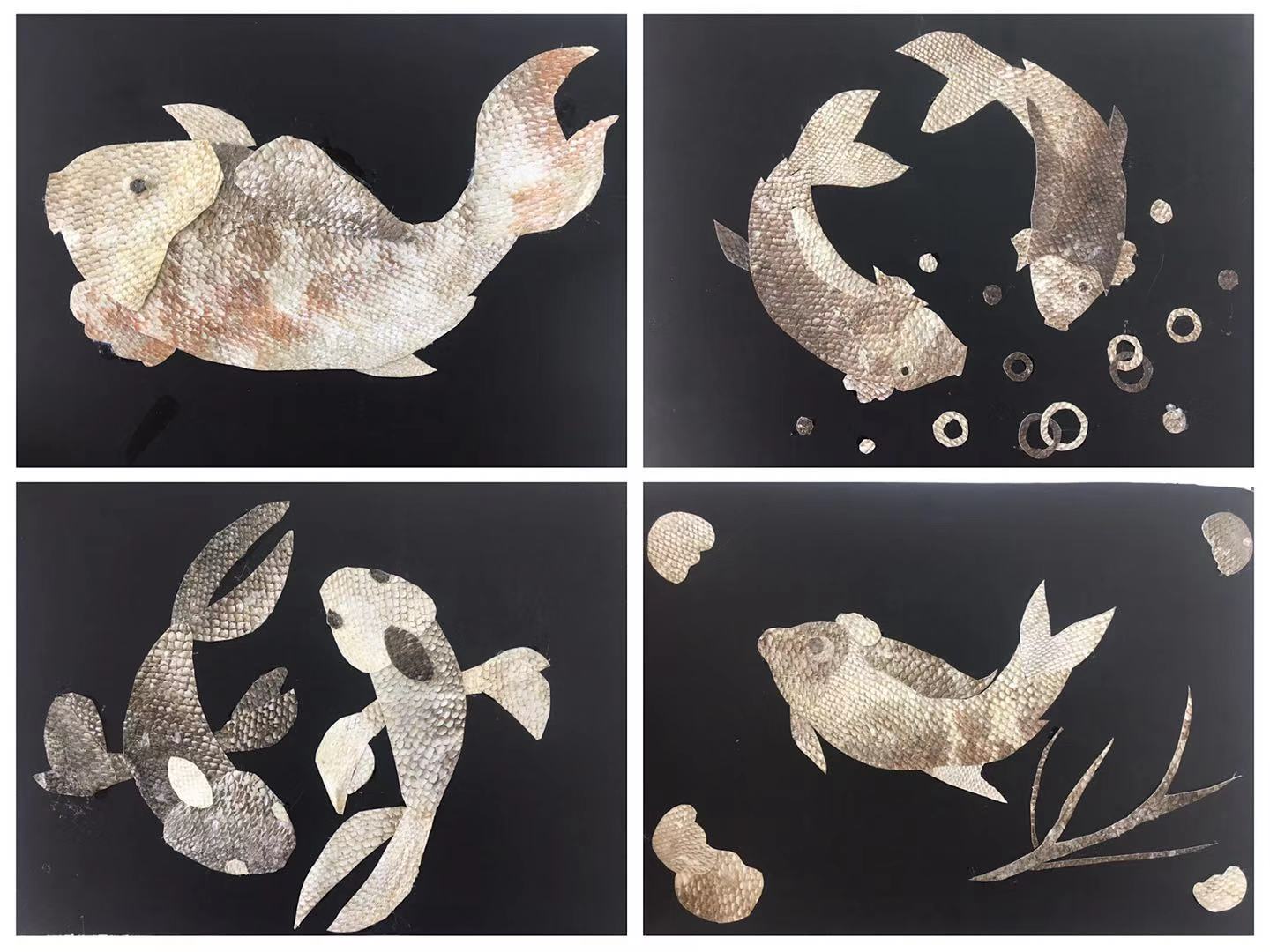 留学生鱼皮画作品