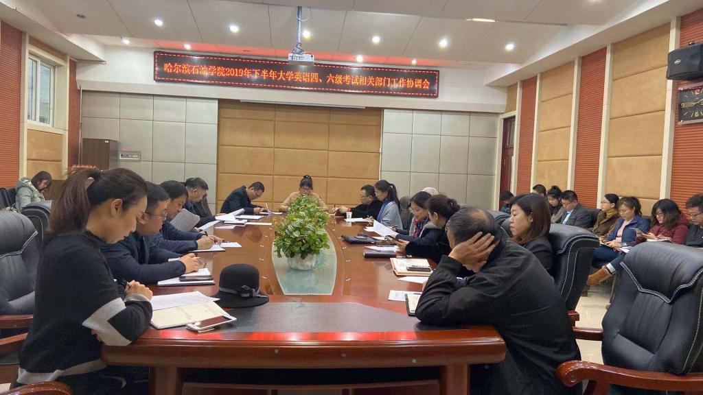 2019年12月12日上午,在教学主楼320会议室召开2019年下半年全国大学外语四、六级考试协调会。会议由教务处处长张耘主持,校长冯晓、党委书记焦光纯、副校长杨春文出席会议,各二级学院书记、院长、校办、学工处、后勤集团、资产处、保卫处、团委等相关部门负责人及教务处人员参加了本次会议。