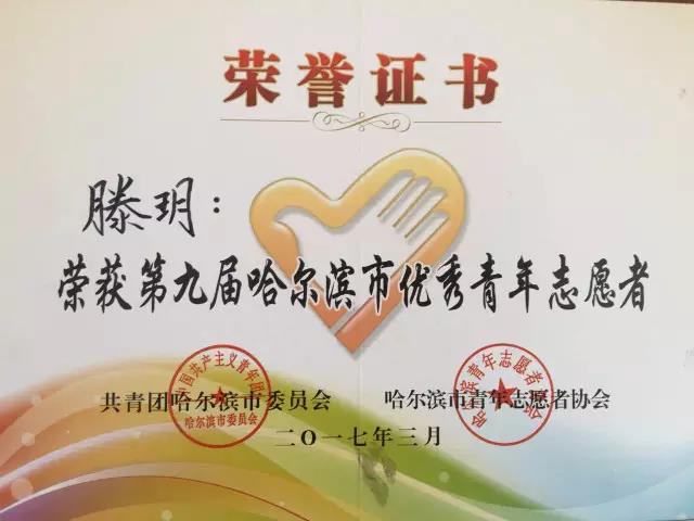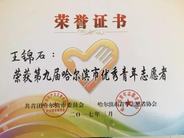 伟德官网团委书记王锦石和校青协主席滕玥均获得第九届哈尔市优秀青年志愿者荣誉称号。