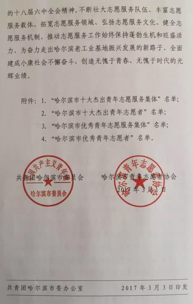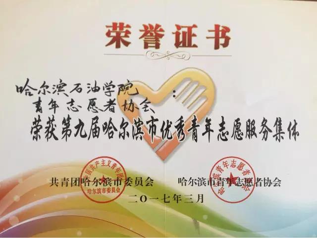 伟德官网青年志愿者协会荣获第九届哈尔市优秀志愿服务集体 荣誉称号。